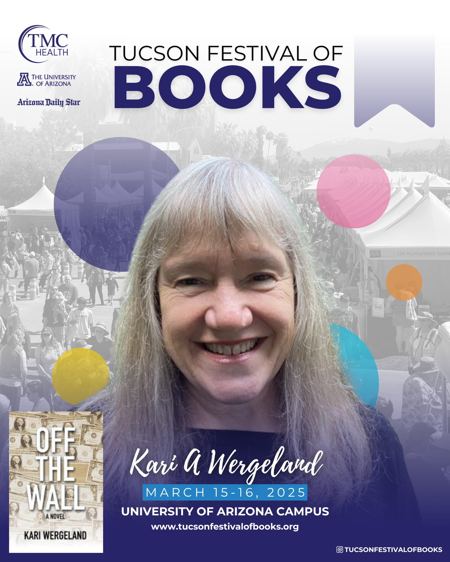 Off the Wall has been selected to be featured in the Reimagined Indie Author Experience at the 2025 Tucson Festival of Books. I’m looking forward to signing copies in the Indie Authors Pavilion (adult fiction and non-fiction) on Saturday, March 15, 10 am – 1 pm.