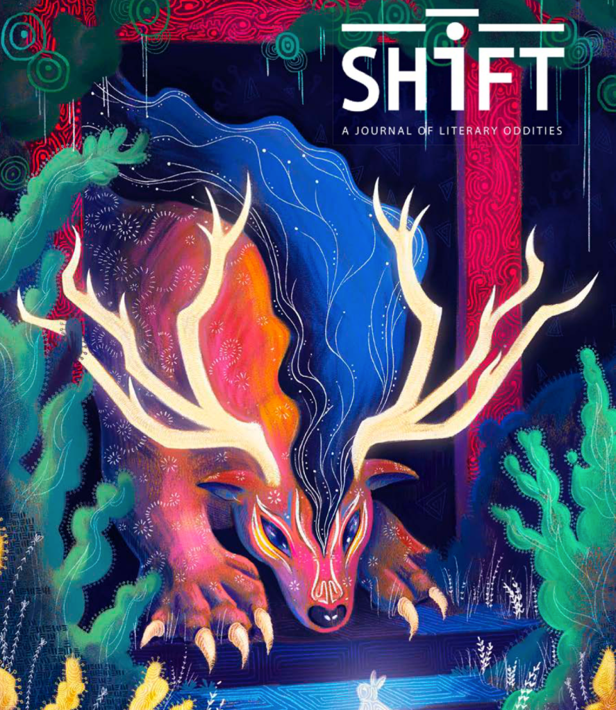 The 7th issue of Shift: A Journal of Literary Oddities contains an important milestone for my writing life. The journal recently published my poem, “Hands-free,” which happens to be my 100th poem to appear in a literary journal or anthology. I’ve meant to go over each acceptance and figure out how many of the 50 states I’ve appeared in, but other tasks have taken precedence.