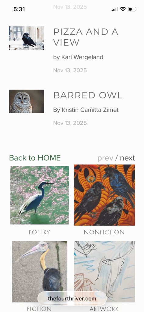 I’m pleased to announce my poem, “Pizza and a View,” was published in the latest online issue of Fourth River.