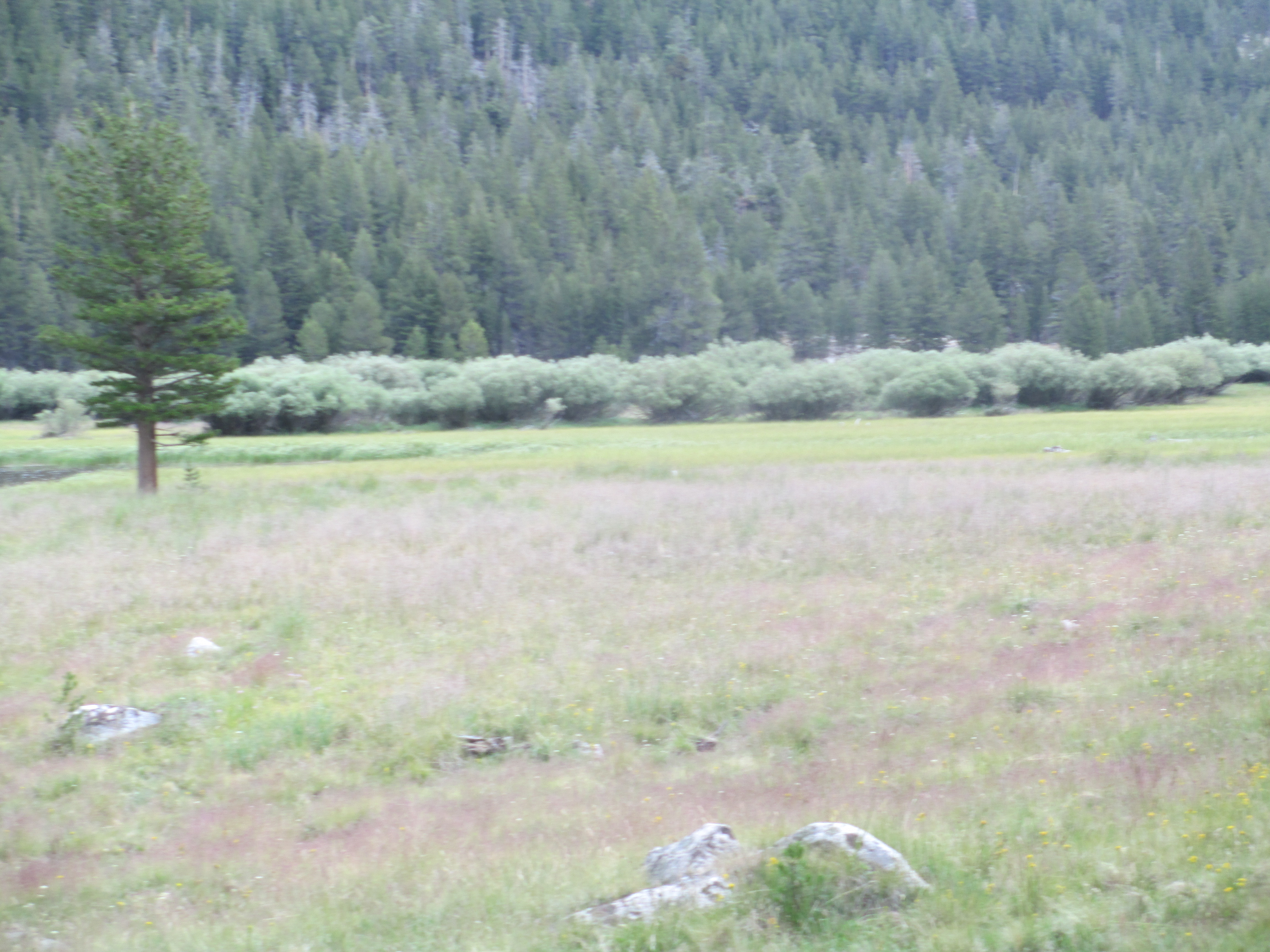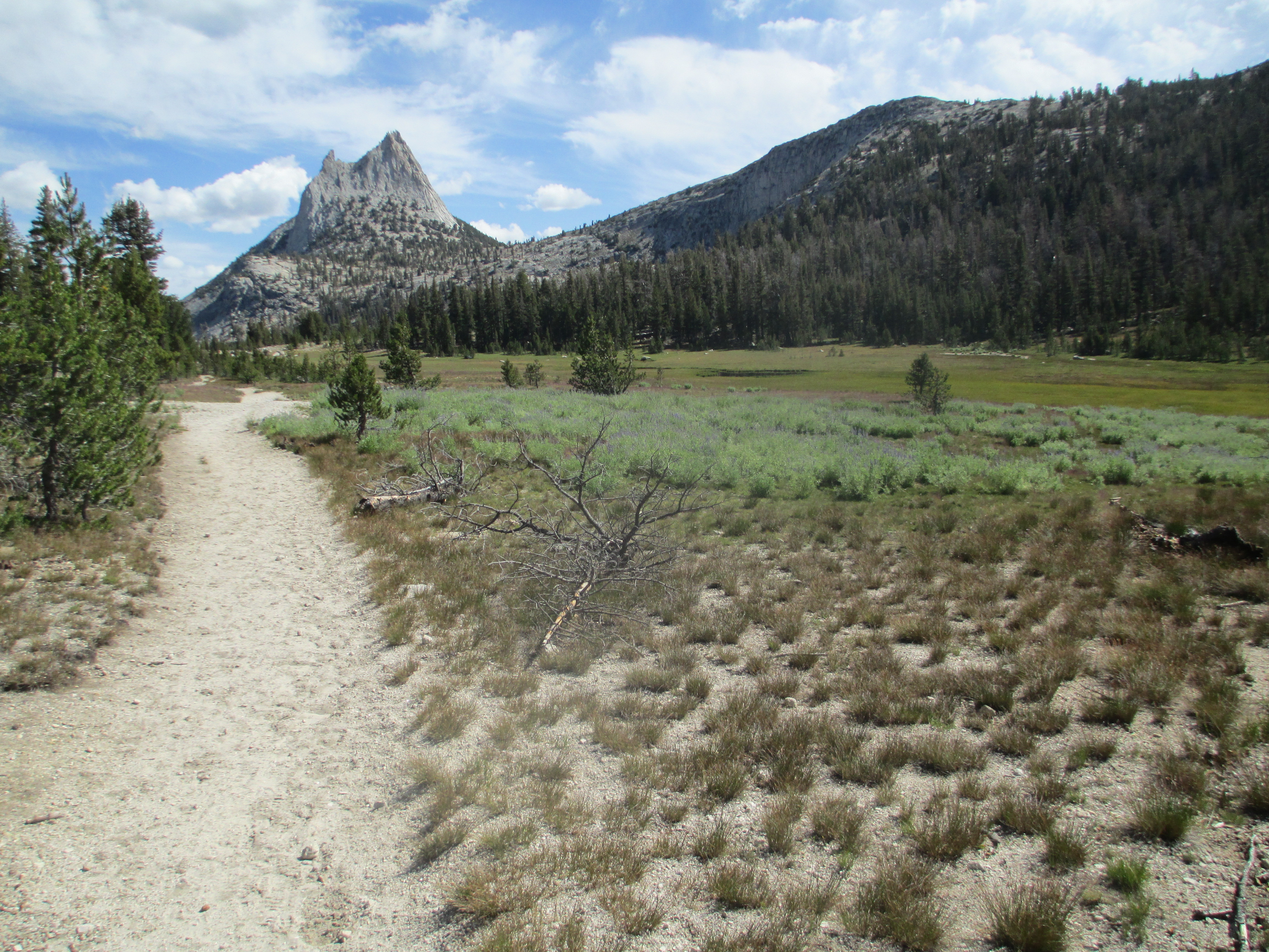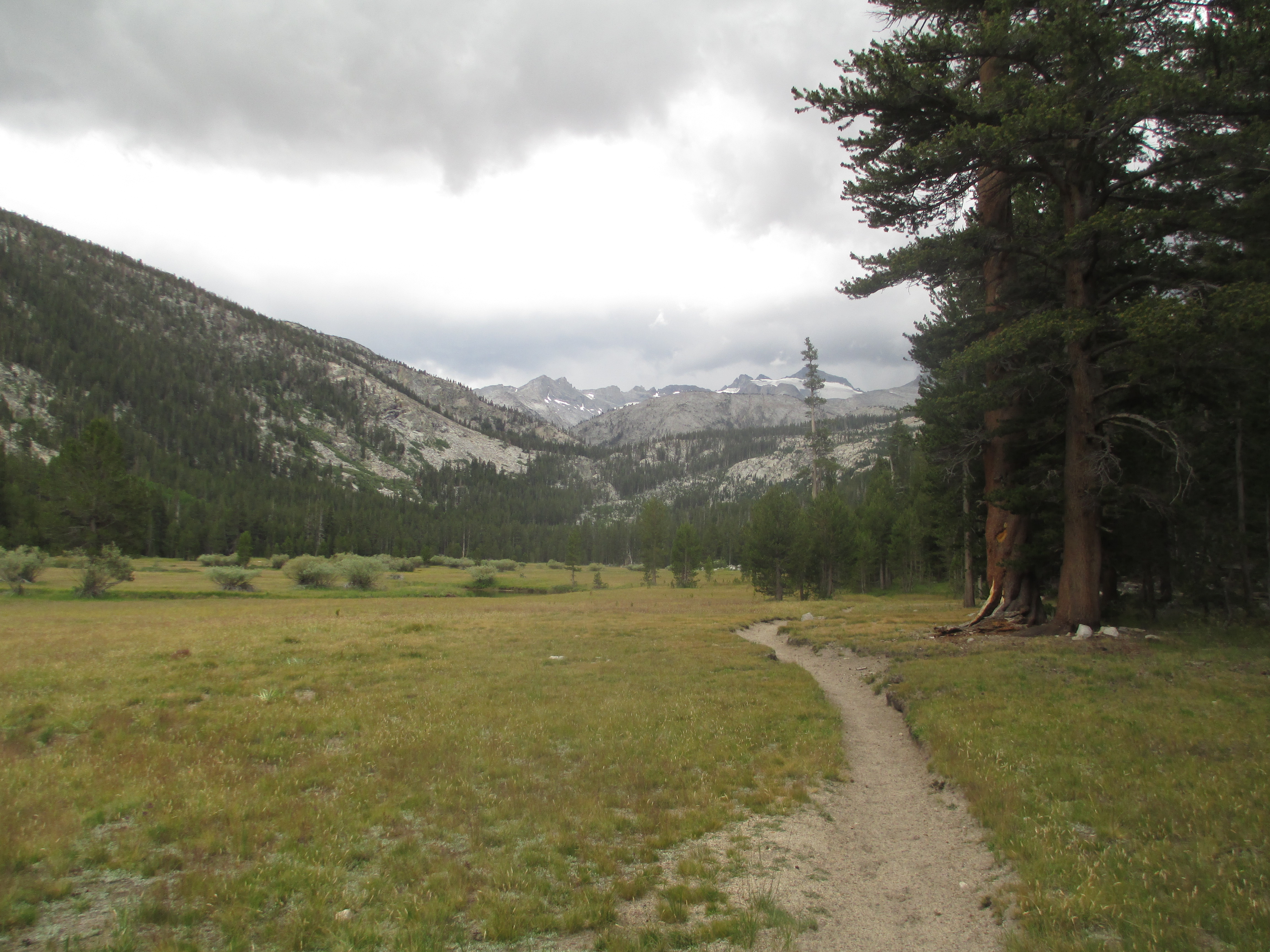 The next morning (day 6), I took stock of my situation. My original plan was to leave the group (I needed to keep my trek beneath 10,000 feet, because I’ve experienced scary altitude sickness when I’ve attempted to go higher) and head back down Lyell Canyon until I reached the Evelyn Lake Junction. From there, I was going to spend one last night by the lake, before taking the Rafferty Creek Trail to Tuolumne Meadows where my car was parked. While I’d managed to stay dry throughout the storms we experienced, I decided another night – alone this time – in more rain at an elevation of 10,334 would not be a good idea.