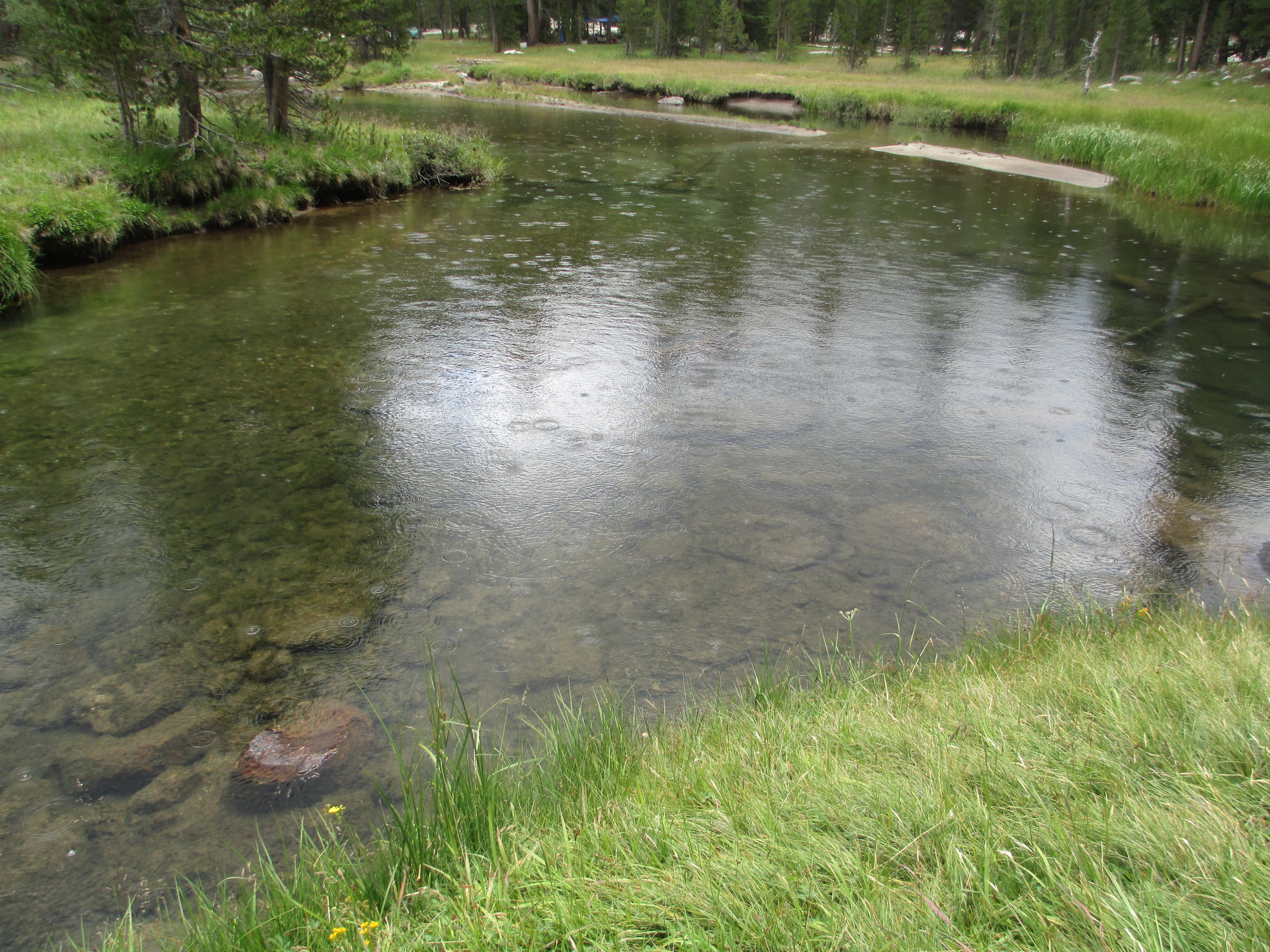 Instead, I shortened my trip by one night and hiked some 10 miles back down the John Muir Trail to Tuolumne Meadows. Needless to say, it rained and hailed most of the way. As I walked, I truly felt for my fellow hikers, who were in process making their way over Donohue Pass at 11,056 feet. They did arrive safely in Red’s Meadow on day 8.