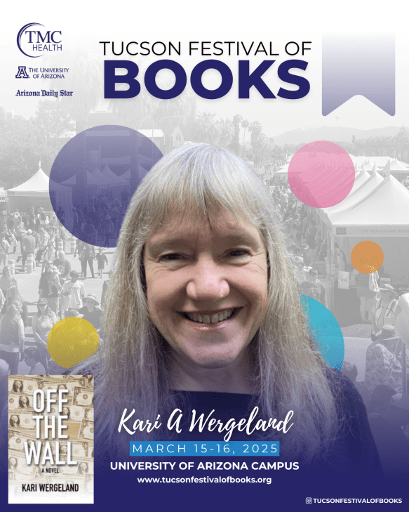 - March 15, 2025, 10 am to 1 pm: I will be signing copies of Off the Wall at the Tucson Festival of Books in the Indie Author Pavilion (adult fiction and non-fiction).